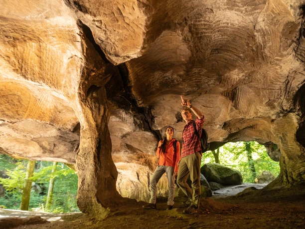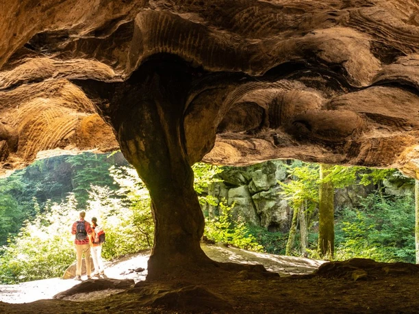 Leave the hustle and bustle of the abbey town behind you and dive into the green of the forest. Descend into the Wolfsschlucht (Wolf Gorge), climb up between walls of rocks that seem to reach into the sky. Stop, nestle together, feel warmth in the cool gorge. Other highlights await you, such as the Huel Lee millstone grotto and the Breechkaul amphitheater.