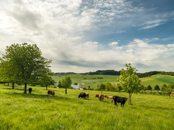 After the hike, a detour to the barn café in Gillenfeld is well worthwhile. It is actually a rustic barn typical of the Eifel, which has been lovingly and stylishly converted into a paradise for gourmets. Homemade cakes and tarte flambée, cheese, meat and poultry specialties from the surrounding farms, which are produced in a species-appropriate manner or even in organic quality, fair-trade coffee and more make a detour to the lively village a blissful experience.
