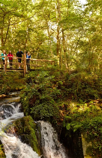 The trail continues along a section of the "Carolingian Trail" through the forest. An absolute highlight of the route is the waterfall, the Rausch. All you have to do is follow the signs and you are right at the foot of the Rausch. The thundering waterfall plunges 7 m into the valley basin, this natural spectacle is impressive!