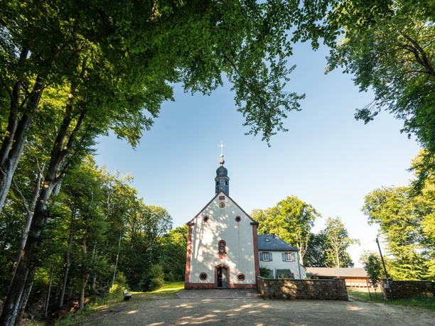"Droben stehet die Kapelle, schauet still ins Tal hinab". The words of the poet Ludwig Uhland are the most beautiful reality for the Schankweiler Klause. In the midst of the solitude of the forest, it stands on an advanced rock plateau, on a steep slope to the lovely Enz valley, above the villages of Holsthum and Schankweiler. It consists of a baroque chapel and a hermit's house attached to the side. According to legend, it goes back to a crusader who promised to build a chapel on the spot where his horse first trod on home soil. Enter the chapel and be surprised by the rich rococo interior and the magnificent high altar. This place of grace to the "Mother of Good Counsel" has been the destination of countless pilgrims since its foundation in 1648 and has been the home of numerous hermits.