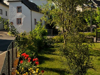 The Nat'Our theme island "Water - energy supplier through the ages" and the Dasburg bunker hiking trail are reminders of these times. Today, nature and man work hand in hand: As part of the cross-border nature park project "Nat'Our", areas along the banks of the river Our have been cleared, weirs have been dismantled and fish ladders have been built so that the brook trout can once again migrate upstream to their spawning grounds. The blasted bunkers have become overgrown and are now valuable habitats and retreats for shy animals such as wildcats and bats.
