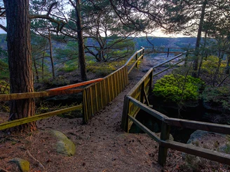 This Wanerroute in the NaturWanderPark delux starts at an extremely exciting point: the "Irrel Waterfalls". Thousands of years ago, the Prüm River had already blasted its way through fallen rocks here, creating a romantic river landscape with mighty boulders and numerous rapids. But this landscape is history. Violent floods following heavy rains in July 2021 swept away the former bridge and its approach, tearing huge boulders from the embankment and completely transforming this section of the river overnight. From the new suspension bridge, let yourself be impressed by the destructive and at the same time creative forces that have raged here.