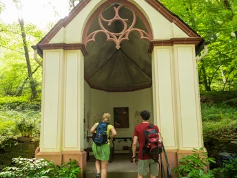 Park your car in Irrel and take the Enztal cycle bus (line 423) to Neuerburg. There you can stop for refreshments at the "Bei Johann" restaurant before taking a short walk along the "Neuer-Burg-Weg" to the Schwarzbildchen pilgrimage site and then starting the tour on the Enz cycle path.