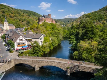 The route leads via Monschau to Einruhr, along the Rursee lake through the Rureifel, past Düren and Jülich, and through the Heinsberg region. At the edge of the cycle route in North Rhine-Westphalia, the history of the water comes alive. Cloth production, dams, papermaking and interesting museums invite cyclists to learn more about life along the water.