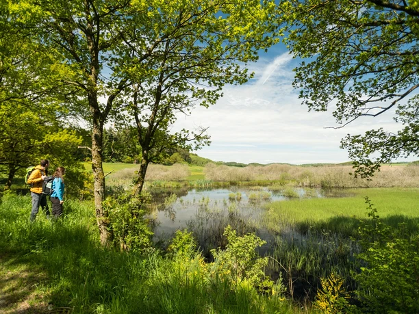 The Muße hike on the fairytale route is an adventure trip to the thickly moss-covered remains of a Celtic ring wall hidden in the forest and to the 28-metre-high Vulcano information platform observation tower on the Steineberger Ley. It leads to the silting maar called Mürmes, a boggy paradise for rare plants and animals, and to the Demerather Drees, one of the Eifel's volcanic acidulous wells. It is literally a "fairytale" journey through time, accompanied at selected stations by the leitmotif of the garden fence - to look over, lean on, ponder, chat, read, take a break.